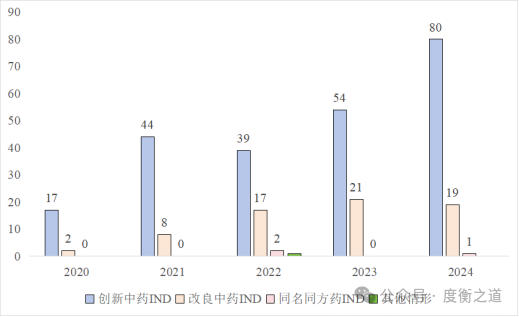 药审中心的数据显示:2020-2024年中药新药IND和NDA申报均呈逐年上升的趋势。